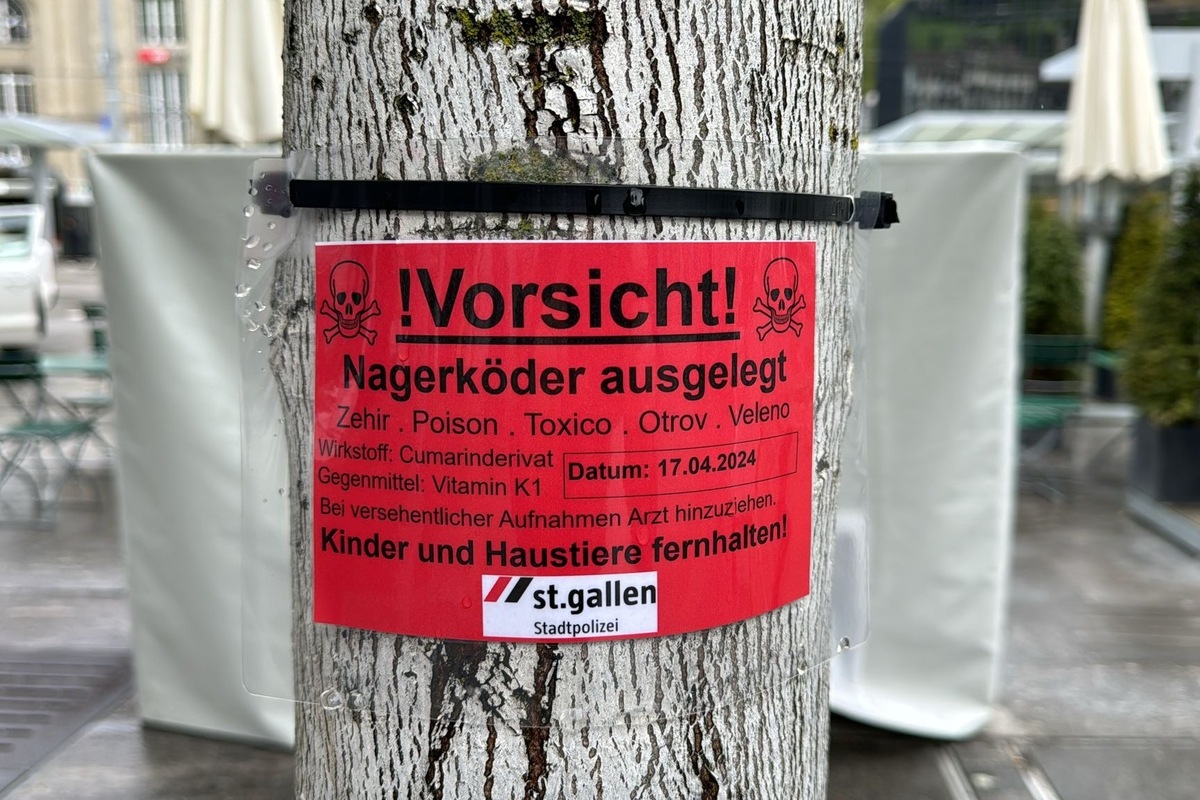 Auf dem Kornhausplatz in St.Gallen halten sich seit mehreren Wochen Ratten auf. Die Situation wurde von Fachleuten beobachtet und beurteilt. Damit eine weitere Vermehrung der Ratten und damit die Gefahr der Krankheitsübertragung verhindert wird, wurde durch einen Schädlingsbekämpfer Rattengift eingesetzt. Eine Gefahr für Menschen besteht nicht, jedoch sollen allfällige tote Tiere nicht angefasst werden.
