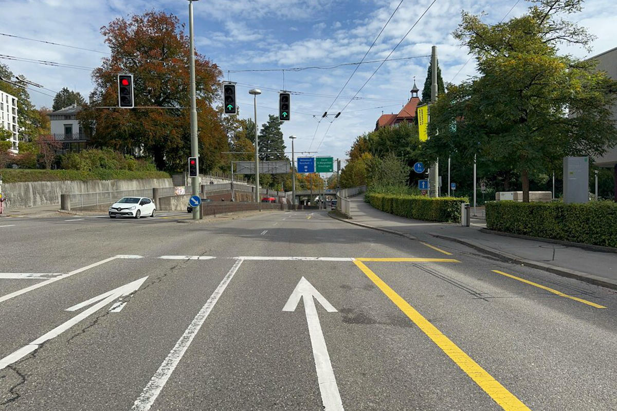 Die Unfallstelle an der Zürcherstrasse in St.Gallen. (Bildquelle: Stadtpolizei St.Gallen)