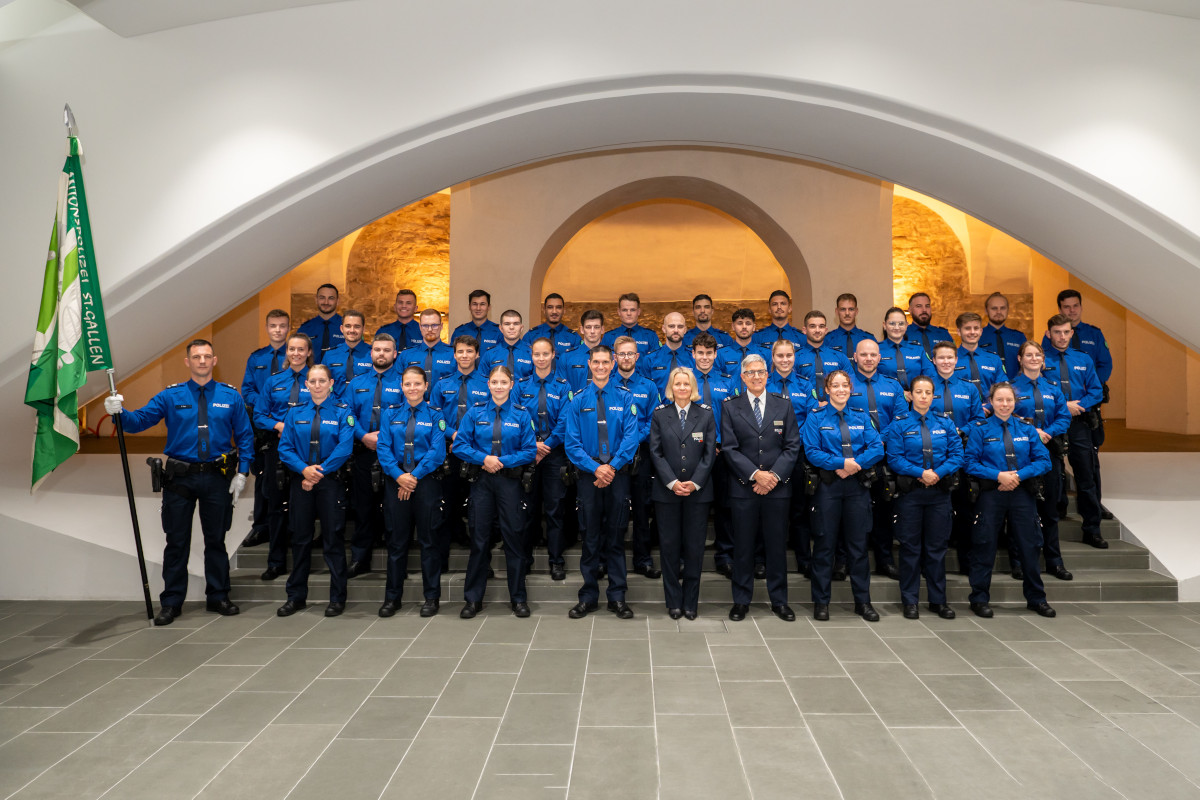 Sie feierten ihre Inpflichtnahme ebenfalls am Donnerstag. Sie werden nun bei der Kantonspolizei St.Gallen unter anderem von professionellen Mentoren und Praxisbegleitenden im polizeilichen Alltag eingeführt und weitergebildet. So erhalten sie das praktische Rüstzeug, um am Ende ihrer zweiten Ausbildungsphase die Berufsprüfung zur Polizistin oder zum Polizisten mit eidgenössischem Fachausweis ablegen zu können.