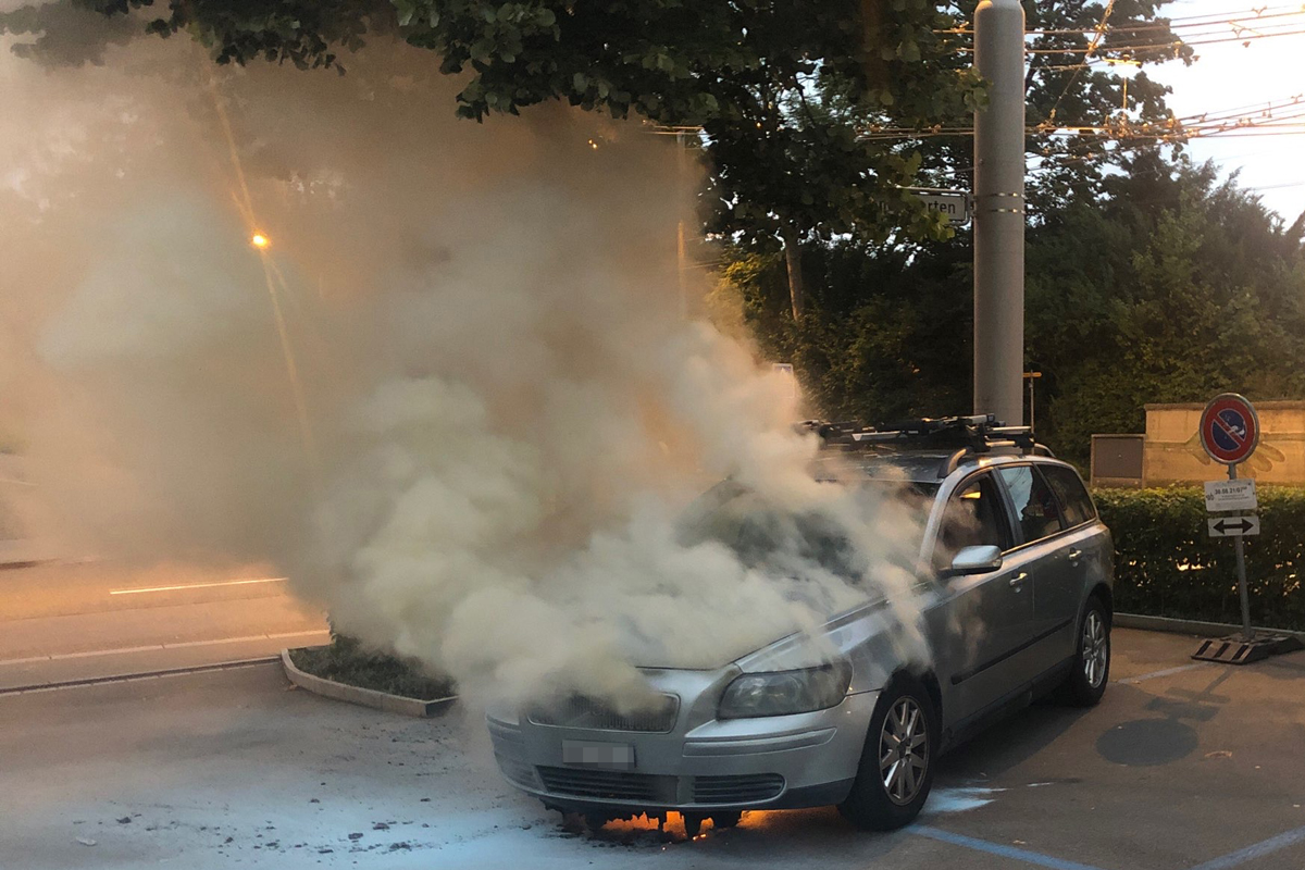 Die Stadtpolizei St.Gallen hatte während einer Patrouillenfahrt eine Rauchentwicklung aus dem Motorenbereich eines Fahrzeugs festgestellt und umgehend die Berufsfeuerwehr St.Gallen alarmiert. Diese konnte das Fahrzeug löschen, jedoch entstand am Auto Totalschaden.