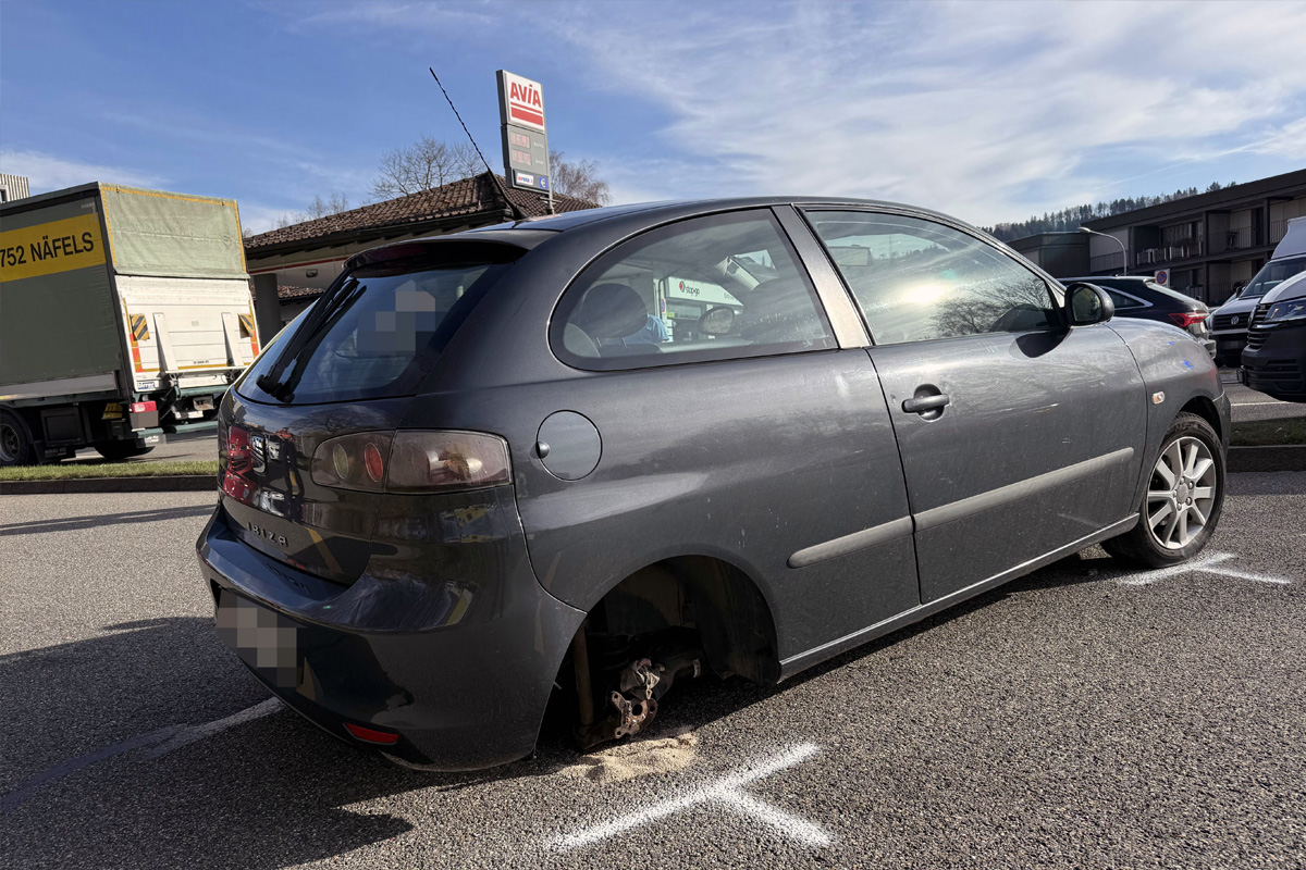 In Folge der Kollision wurde ein Rad des Pkw abgerissen. (Bildquelle: Stadtpolizei St.Gallen)