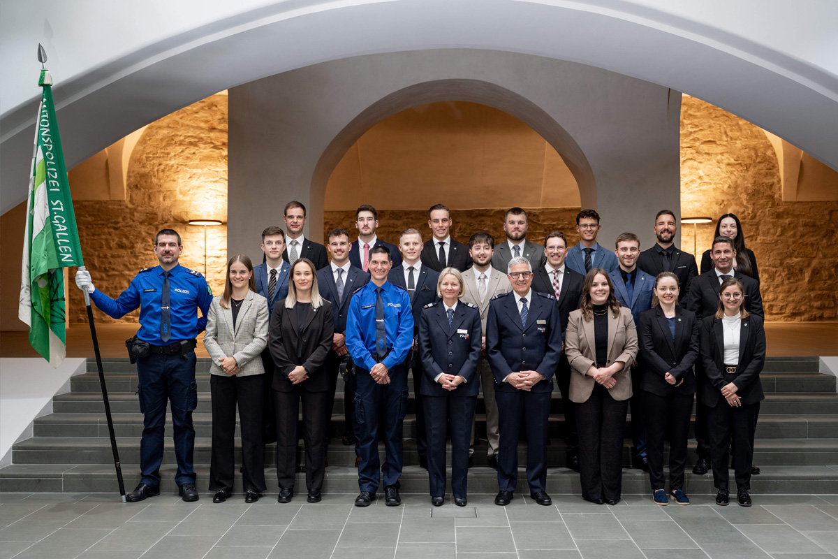 Die Kantonspolizei St.Gallen wünscht den Aspirantinnen und Aspiranten einen guten Start sowie eine erfolgreiche und lehrreiche Ausbildungszeit.