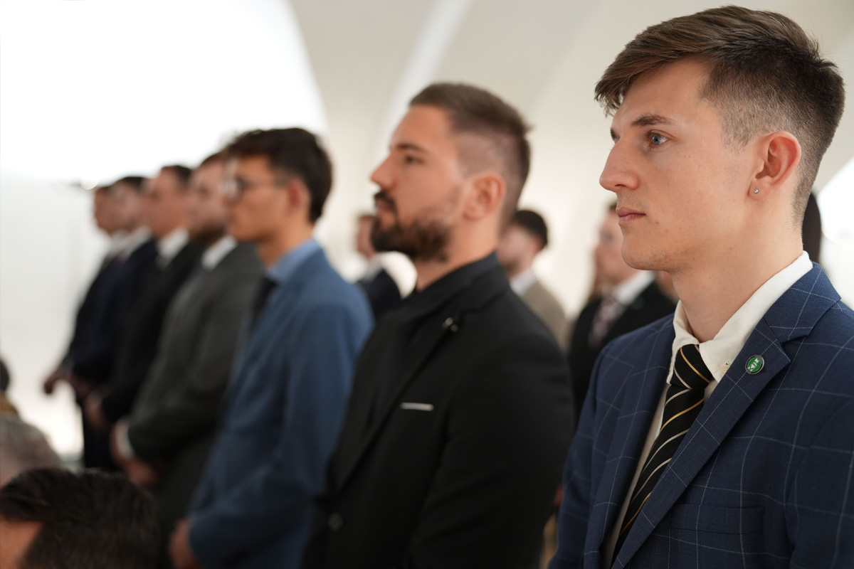19 Polizeiaspiranten erhielten bei der Zeremonie ihre erste Dienstwaffe. (Bildquelle: Kantonspolizei St.Gallen)