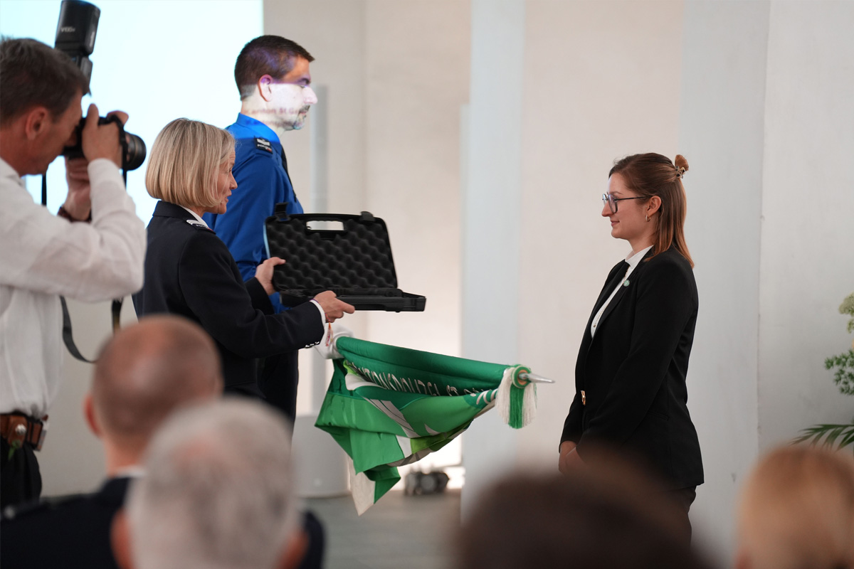 Wichtiger seien kommunikative Stärke, Sachverstand, Deeskalationskompetenz, Beobachtungsgabe, Teamgeist und persönliches Urteilsvermögen. Weiter gab sie den angehenden Polizistinnen und Polizisten mit auf ihren Weg, dass der wichtigste Faktor im Polizeiberuf stets der Mensch hinter der Uniform sei.
