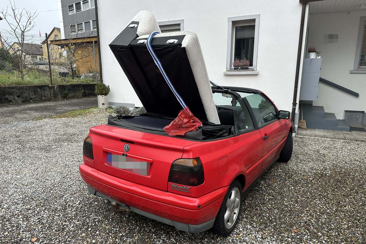 Am Samstag (18.11.2023) hat die Polizei eine Autofahrerin angehalten, weil sie ein Sofa transportierte, welches nicht genügend gesichert war. Das Sofa ragte aus dem offenen Cabriolet hinaus und war nur mit einem lockeren Abschleppseil befestigt. Die Lenkerin wird verzeigt.