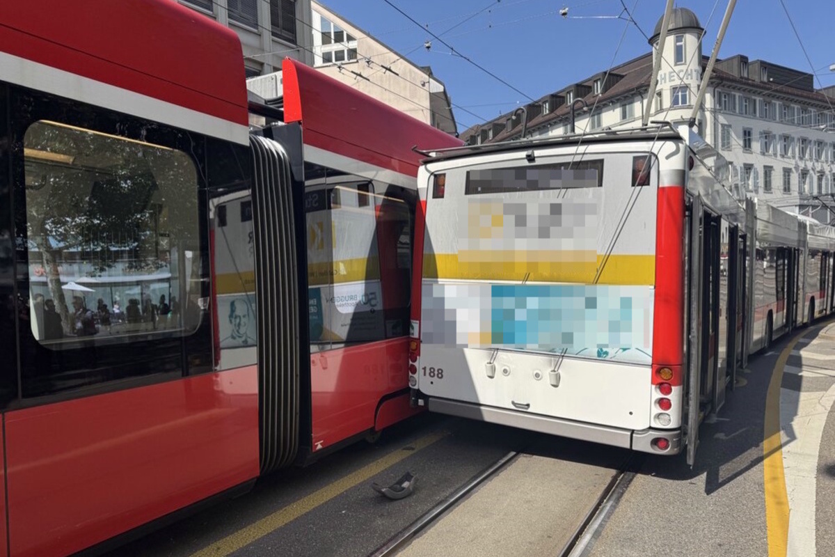 Am Freitagnachmittag (13.06.2025) ereignete sich am Marktplatz ein Zusammenstoss zwischen einem Gelenktrolleybus und einem Schienenfahrzeug. Glücklicherweise wurde bei dem Unfall niemand verletzt, jedoch entstand erheblicher Sachschaden.
