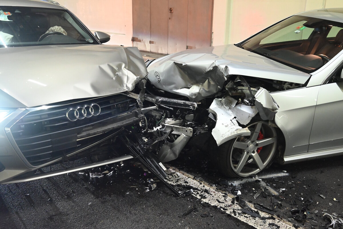 Am frühen Montagmorgen kam es im Rosenbergtunnel bei St.Gallen zu einer Frontalkollision zwischen zwei Autos. Verletzt wurde niemand, es entstand jedoch hoher Sachschaden und der Morgenverkehr staute sich.