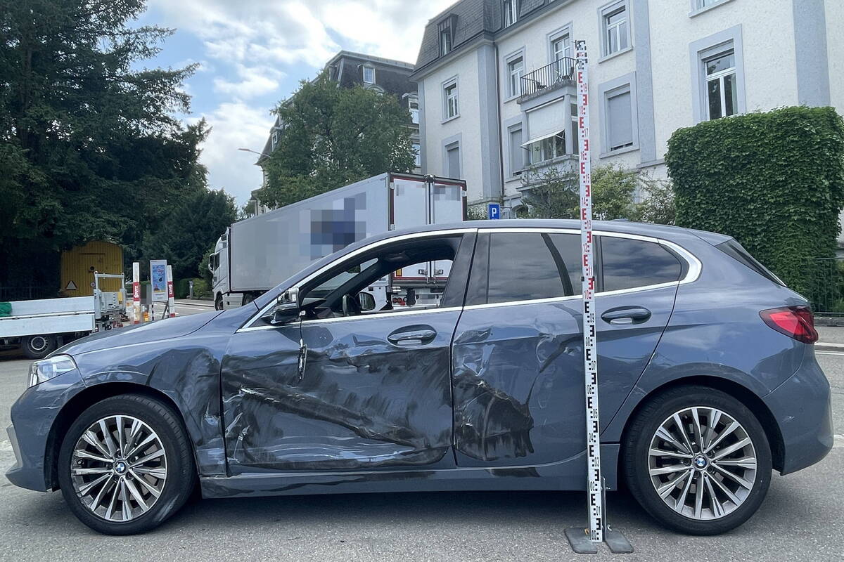 In der Folge kam es beim Spurenwechsel zu einem Zusammenprall zwischen dem Lastwagen und dem Auto, woraufhin das Auto auf das Trottoir gedrückt wurde. Daraufhin kamen beide Fahrzeuge zum Stillstand. Dabei wurde der Autofahrer leicht verletzt. Es entstand Sachschaden im Wert von mehreren tausend Franken.