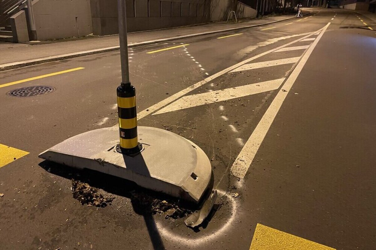St.Gallen - Verkehrsteiler umgefahren und mit einer Signaltafel kollidiert