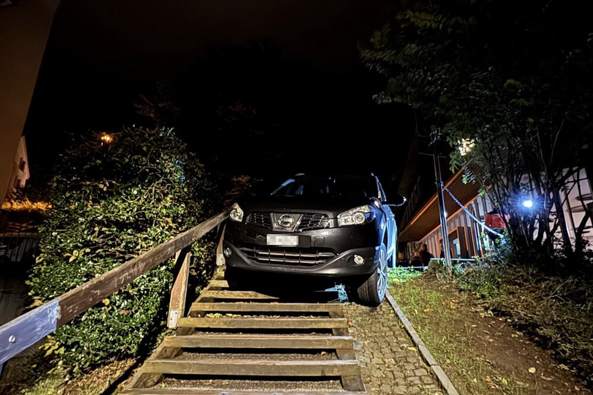 Am frühen Samstagmorgen (28.09.2024) kam ein Auto bei der Melonenstrasse vor einem Treppenabgang zum Stehen und verkeilte sich. Die Polizei sucht Zeugen.