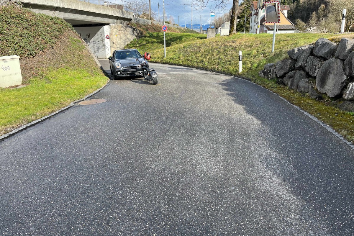 Ein 45-jähriger E-Rollerfahrer fuhr von Rheineck in Richtung Au. Auf der Höhe der Unterführung geriet er auf die Gegenfahrbahn. Zur gleichen Zeit fuhr eine 56-jährige Autofahrerin auf der Nebengrabenstrasse in entgegengesetzte Richtung.