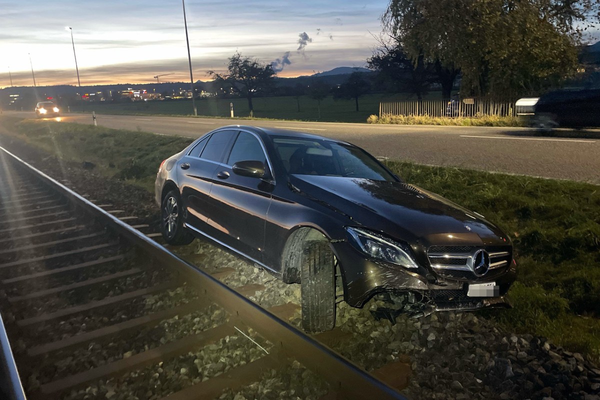 Beim Einbiegen in eine Hauptstrasse verlor eine Automobilistin die Kontrolle über ihren Wagen. Dieser kam von der Fahrbahn ab und landete im Schotterbett der Bahnlinie. Verletzt wurde niemand. Am Auto entstand grosser Schaden.