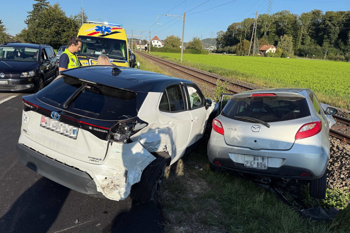 Durch den Aufprall schleuderte es beide Fahrzeuge an den Rand der Fahrbahn und in die Nähe der Gleisanlage. Nebst der Strassensperrung musste daher auch der Zugsverkehr unterbrochen werden.