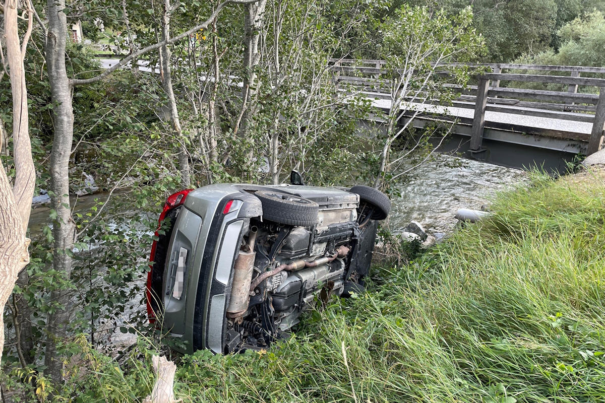 Am Dienstagnachmittag ist ein mit zwei Kindern besetztes Auto in Surava von einem Parkplatz in Richtung des Flusses Albula davongerollt. Das Auto kippte und wurde von Gebüsch aufgehalten.