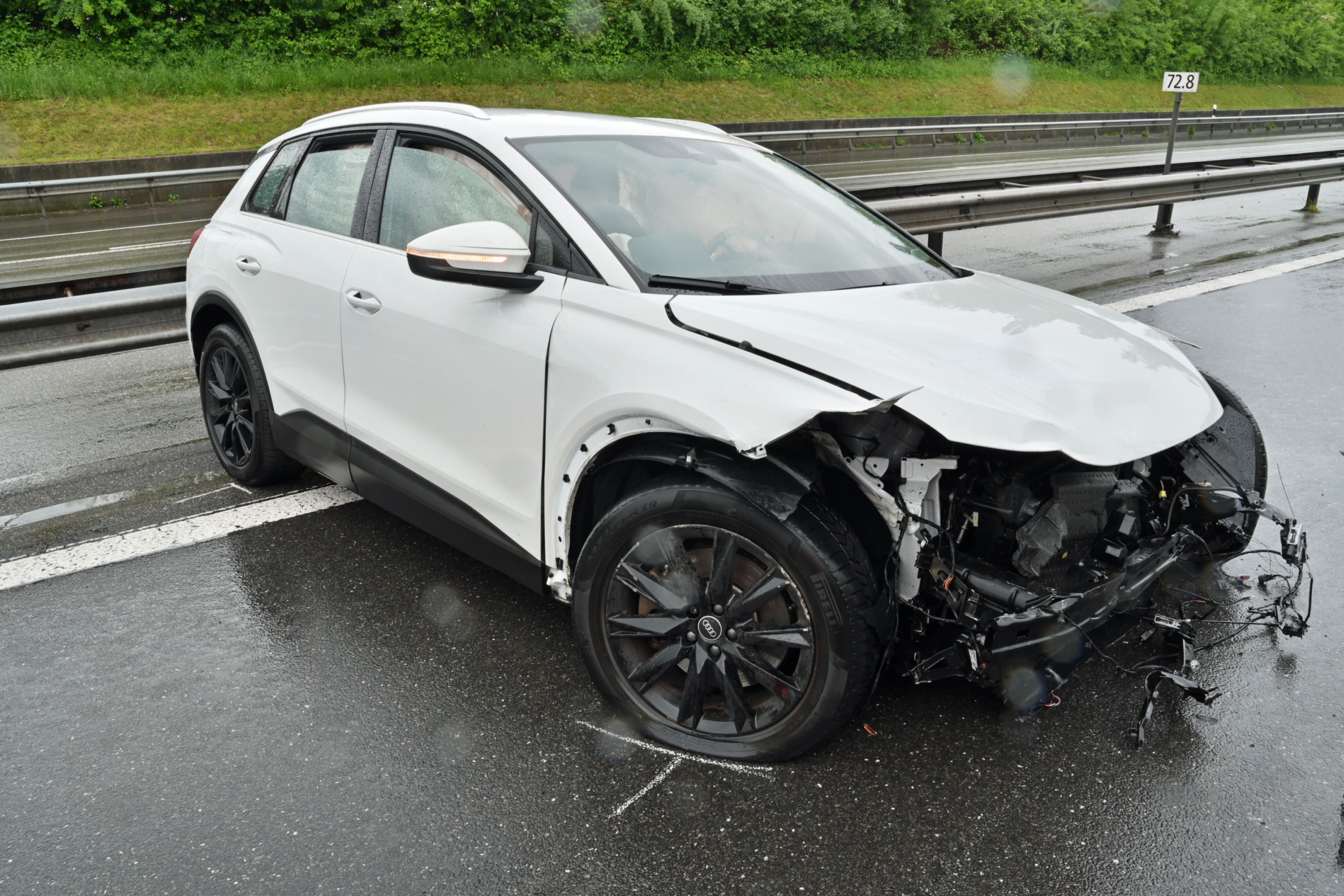 Kurz vor der Autobahnausfahrt Sursee geriet das Auto auf der nassen Fahrbahn ins Schleudern und prallte mit der Front gegen die Mittelleitplanke.