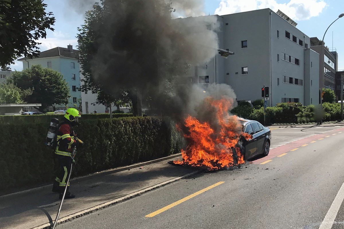 Am Samstagnachmittag geriet auf der Münsterstrasse in Sursee ein Auto in Brand. Verletzt wurde niemand. Das Fahrzeug brannte total aus.