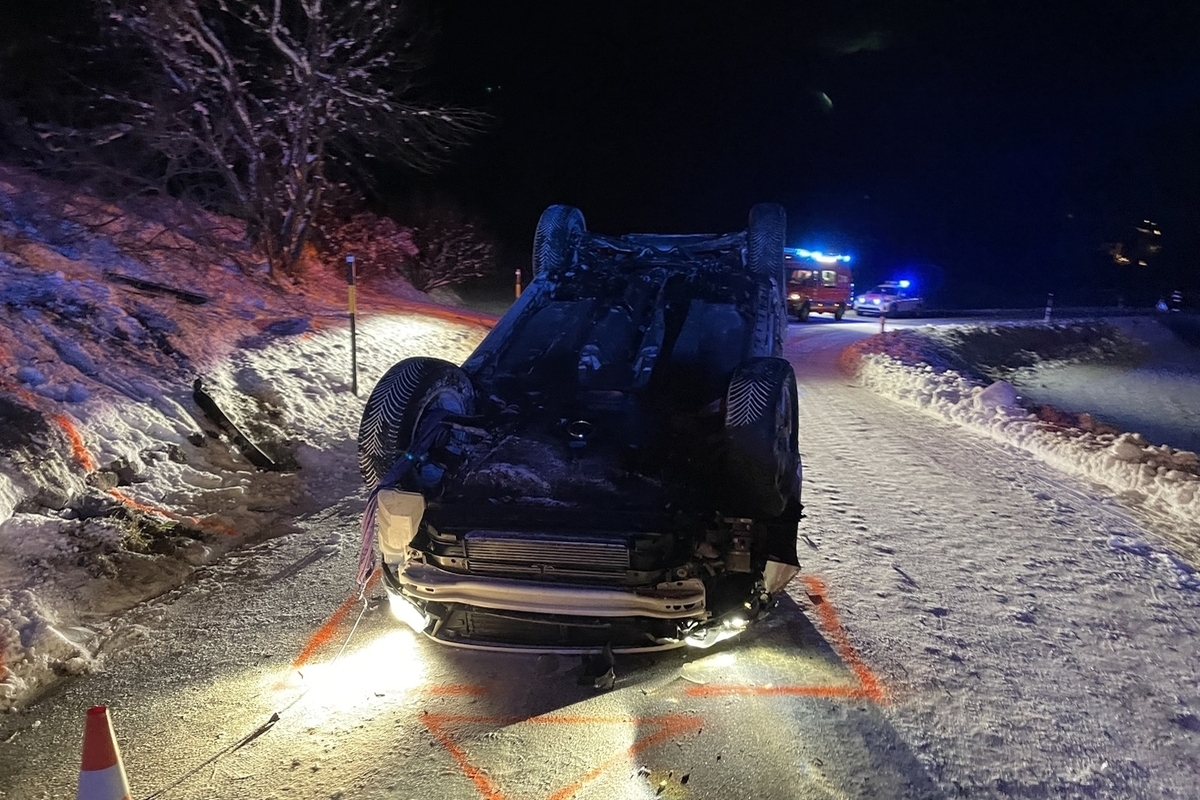 Auf der Flüelapassstrasse in Susch hat sich in der Nacht auf Samstag ein Auto überschlagen. Der 47-jährige Fahrer wurde leicht verletzt und zur Kontrolle ins Spital gebracht.