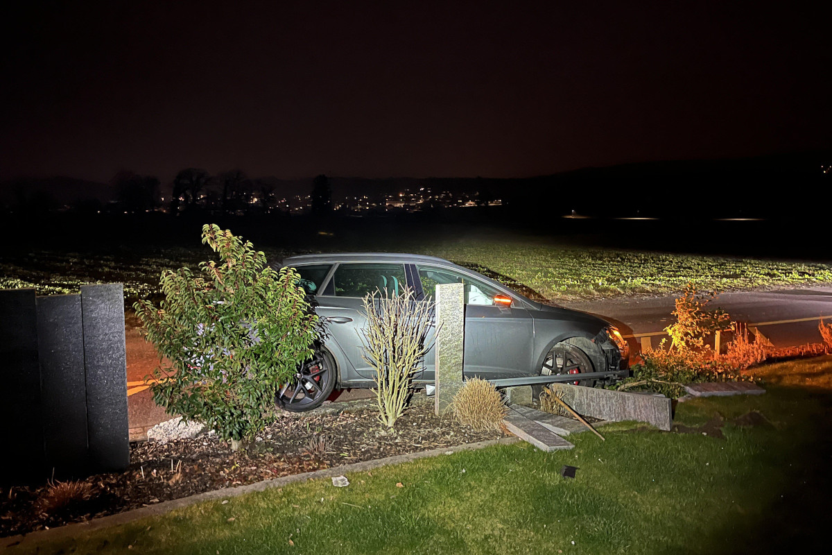 Am Samstag in der Nacht, kurz nach 23:00 Uhr, fuhr eine 39-jährige Automobilistin auf der Wohlenschwilerstrasse in Tägerig. Dabei geriet die PW-Lenkerin mit ihrem Fahrzeug von der Strasse ab und kollidierte mit einer Gartenmauer. Die Lenkerin blieb unverletzt. Am Fahrzeug sowie am Garten entstand Sachschaden.