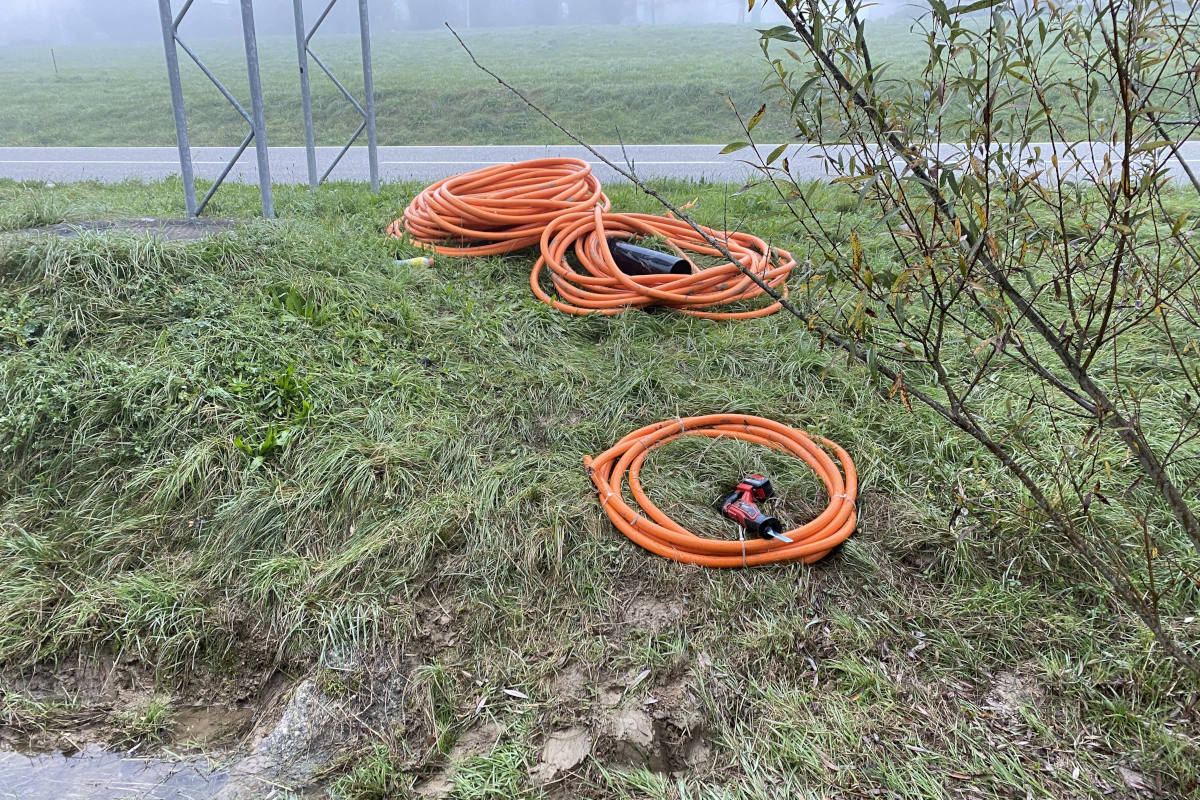 Tatort in Tegerfelden war ein Mehrfamilienhaus-Neubau im Gebiet Tüfebrunne. Als die Arbeiter am Donnerstagmorgen, 27. Oktober 2022, auf der Baustelle erschienen, bemerkten sie, dass ein Starkstromkabel gekappt war. Wie die Kantonspolizei Aargau feststellte, hatte eine unbekannte Täterschaft das dicke Kupferkabel mit einer Säge mehrfach durchschnitten und die Abschnitte aufgerollt am Strassenrand bereitgelegt. Wie es scheint, waren die nächtlichen Diebe gestört worden und hatten ohne Beute die Flucht ergriffen.