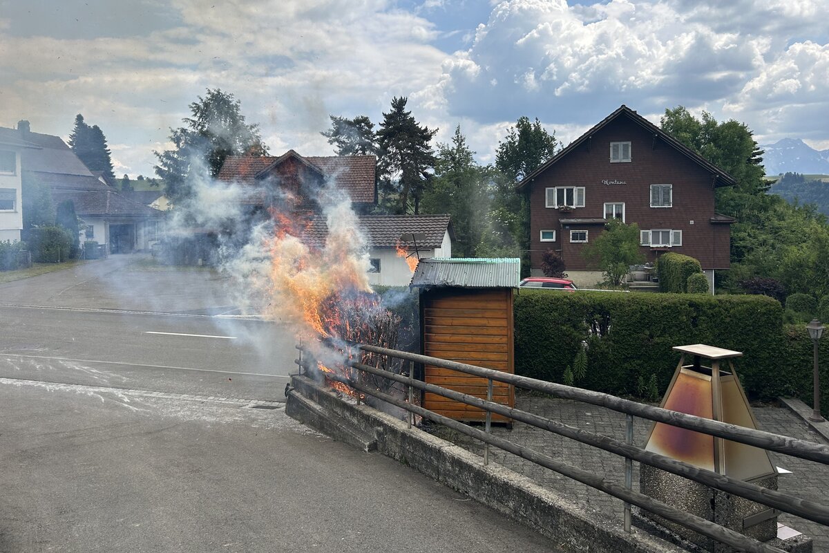 Teufen AR – Brand einer Thujahecke greift auf Gartenhäuschen über