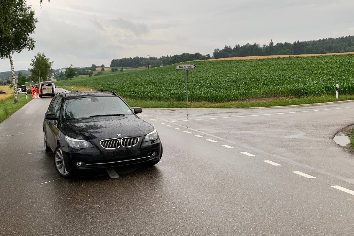 Bei einer Kollision zwischen einem Personenwagen und einem Motorfahrrad ist am Samstagnachmittag (03.07.2021) in Thalheim an der Thur der Zweiradfahrer schwer verletzt worden.