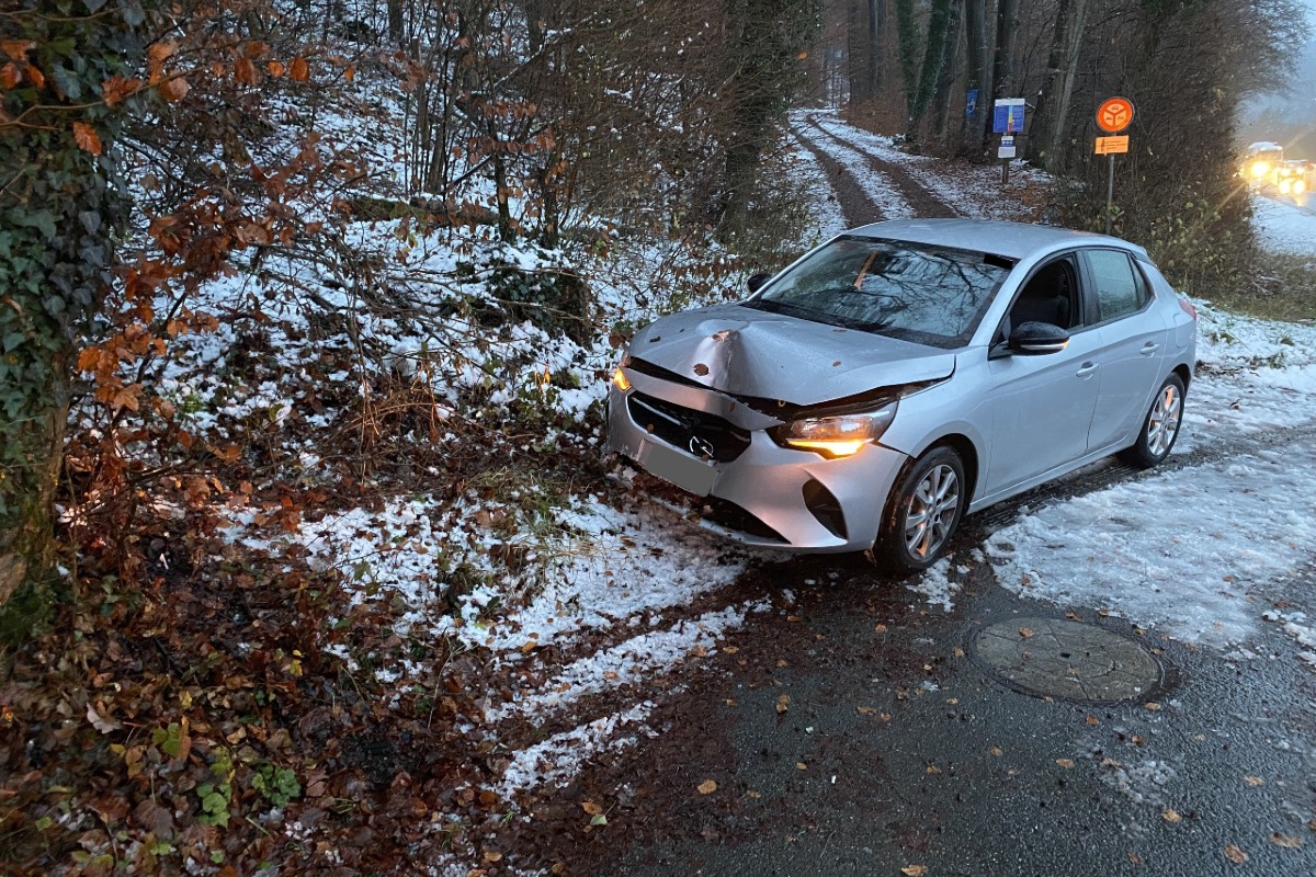 In Thayngen SH ist dieser Fahrer mit Sommerbereifung verunfallt. (Bildquelle: Schaffhauser Polizei)