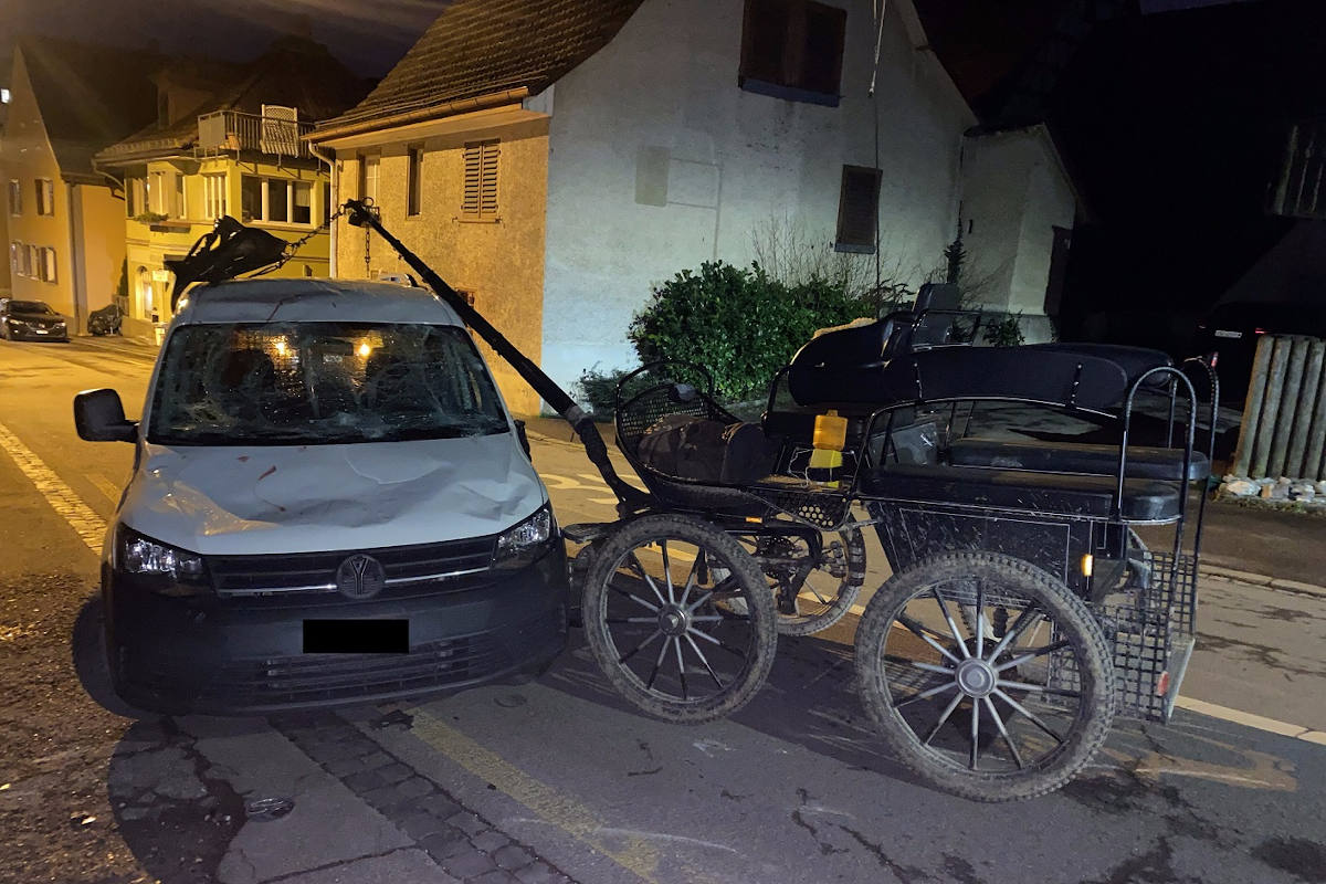 Am Freitagabend (28.01.2022) ereigneten sich in Thayngen mehrere Kollisionen zwischen einem führerlosen Pferdegespann, einem Personen- und einem Lieferwagen. Eine Person und ein Pferd wurden verletzt.