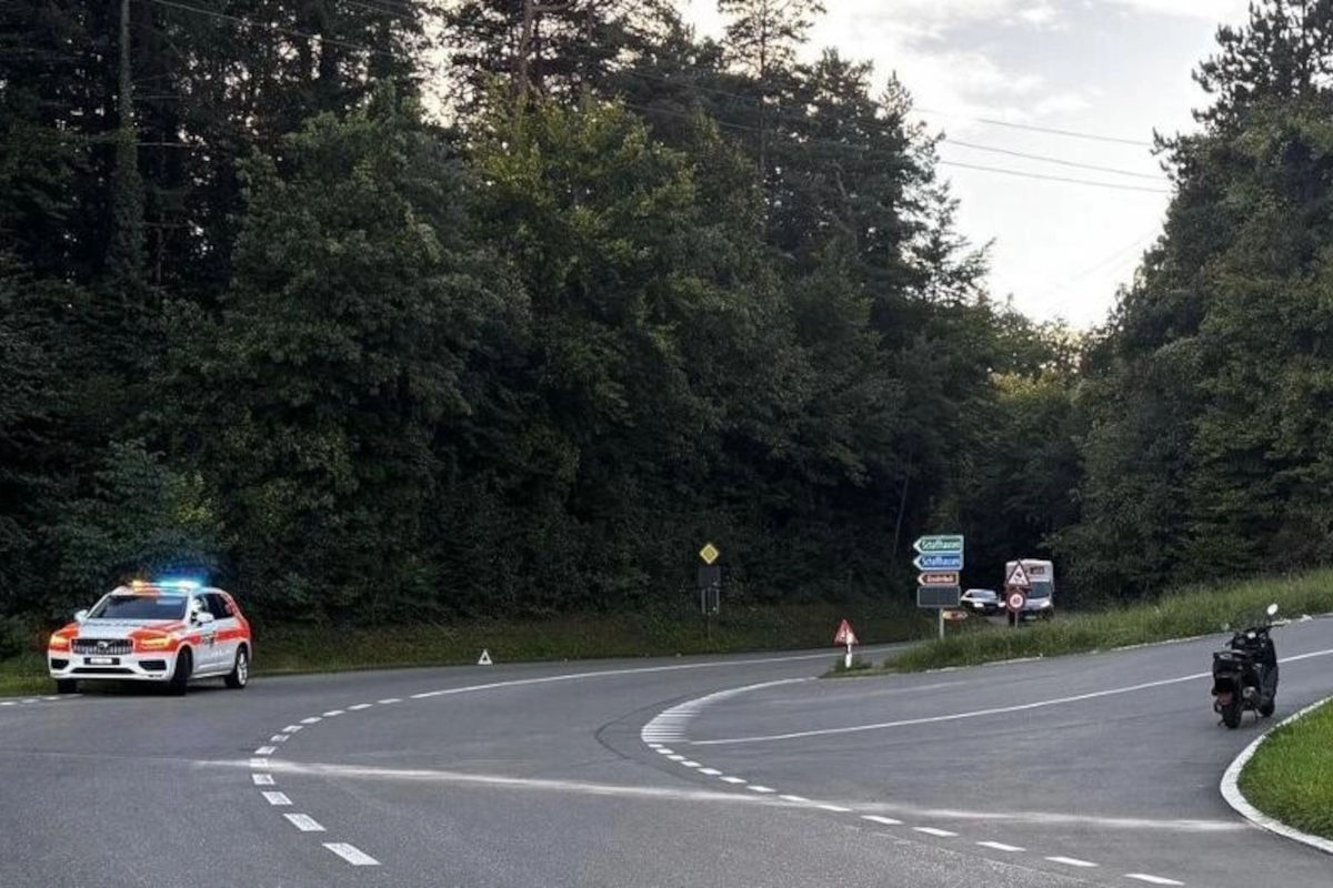 Um 18:10 Uhr am Mittwoch (17.09.2025), beabsichtigte eine 64-jährige Autolenkerin in Thayngen von der Schaffhauserstrasse in Richtung Lohnemerstrasse zu fahren. Bei der Verzweigung Chläpperegg hielt sie an. Da sie keinen anderen Verkehrsteilnehmer wahrnehmen konnte, fuhr sie auf die Reiatstrasse und kollidierte seitlich / frontal mit einem Scooterfahrer, der in Richtung Hüttenleben unterwegs war.