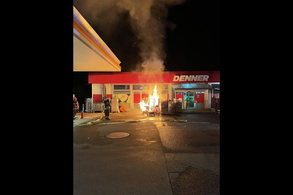 In der Nacht von Samstag auf Sonntag, 22./23. Mai 2021, kurz nach 00.30 Uhr, kam es auf dem Vorplatz einer Geschäftsliegenschaft an der Oberwilerstrasse in Therwil BL zu einem Brandausbruch. Personen wurden dabei keine verletzt.