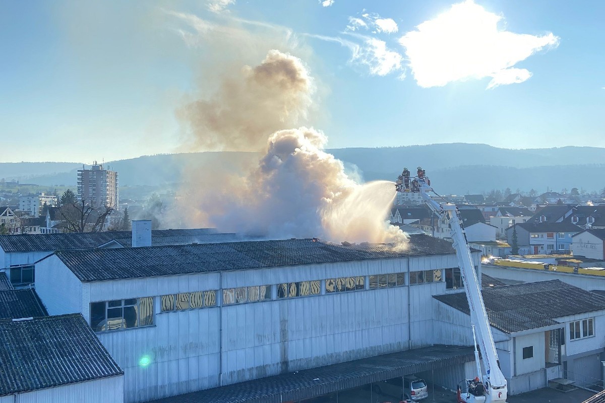 Am Mittwochnachmittag, 12. Januar 2022, gegen 14.00 Uhr, kam es im Dachstock einer grossen Gewerbehalle an der Wilmattstrasse in Therwil BL zu einem Brandausbruch. Personen wurden dabei keine verletzt.