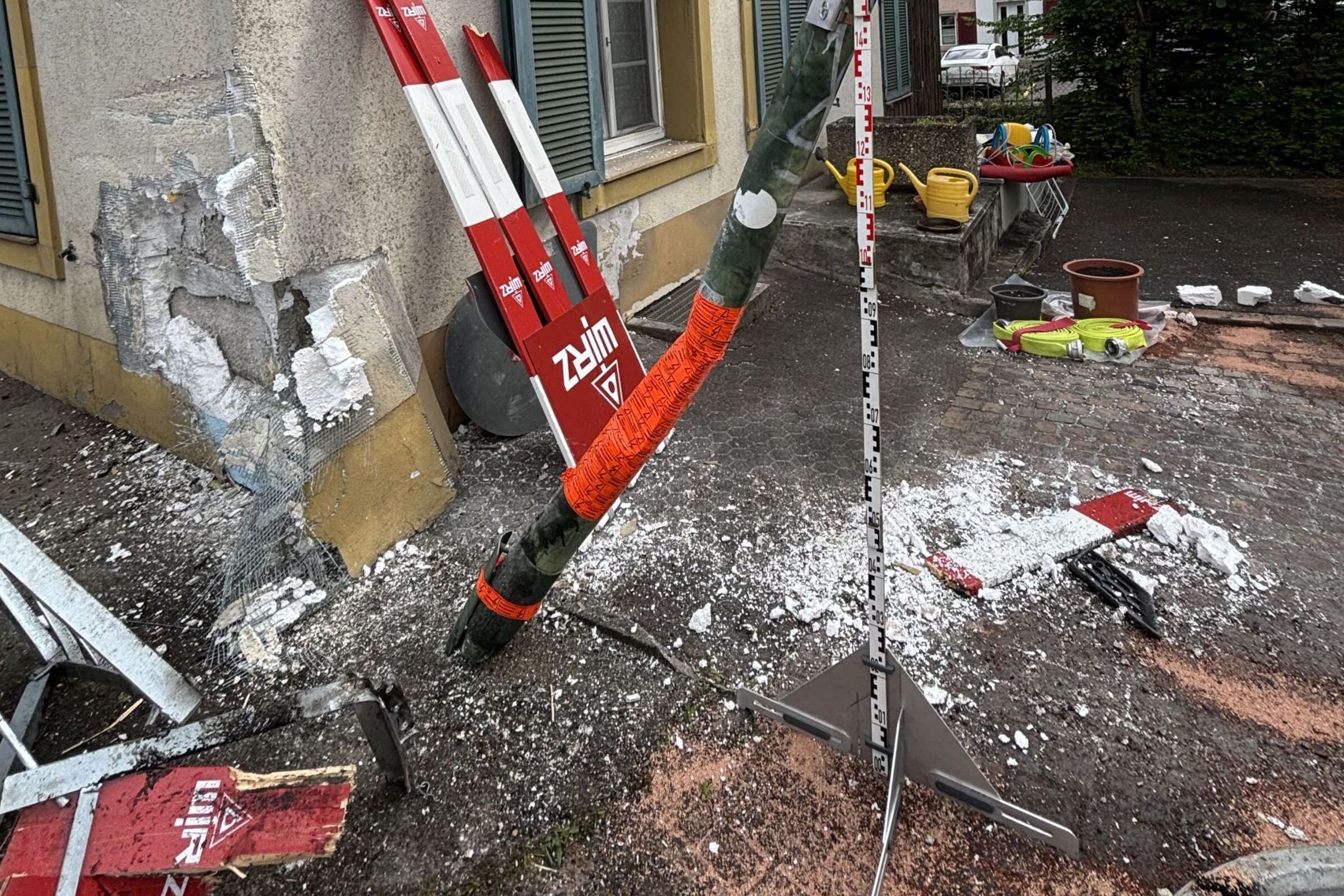 In Thürnen BL prallte ein 35-jähriger Fahrer bei einem Selbstunfall am 4. Mai 2025 mit seinem Fahrzeug gegen eine Hausfassade.