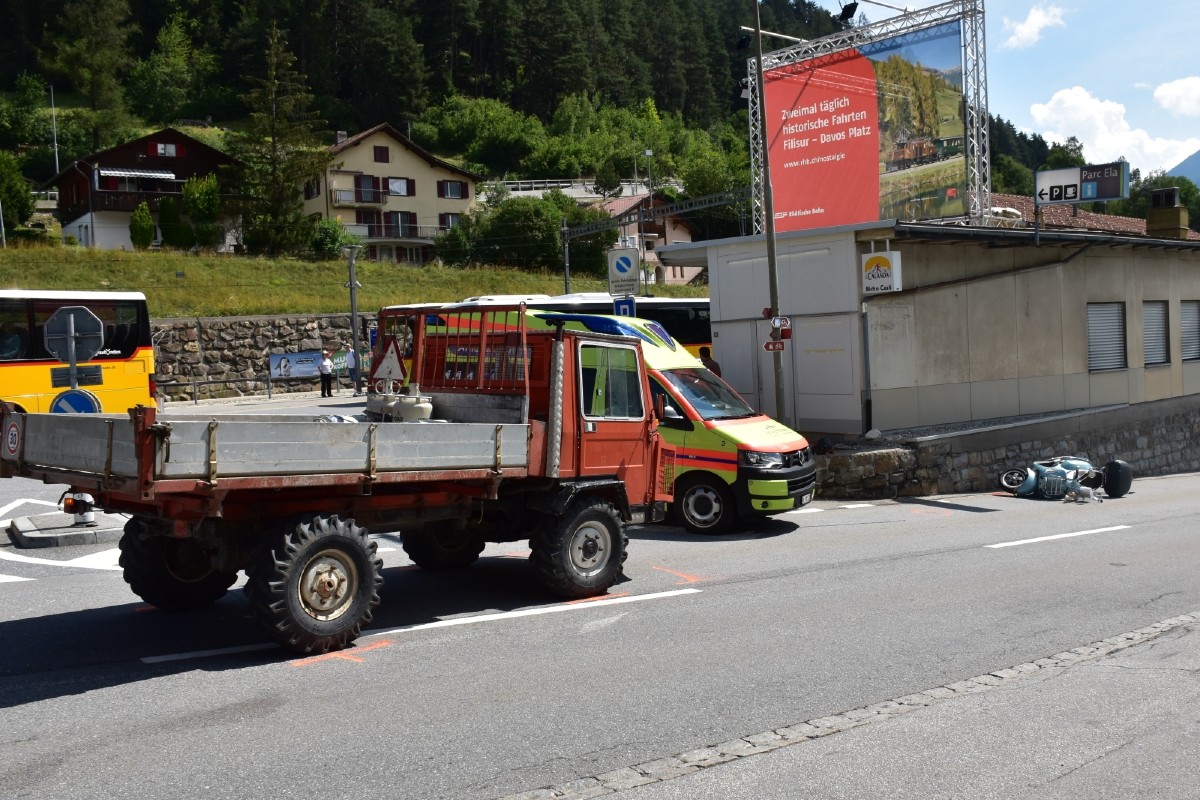 Tiefencastel GR - Roller kollidiert mit Motorkarren