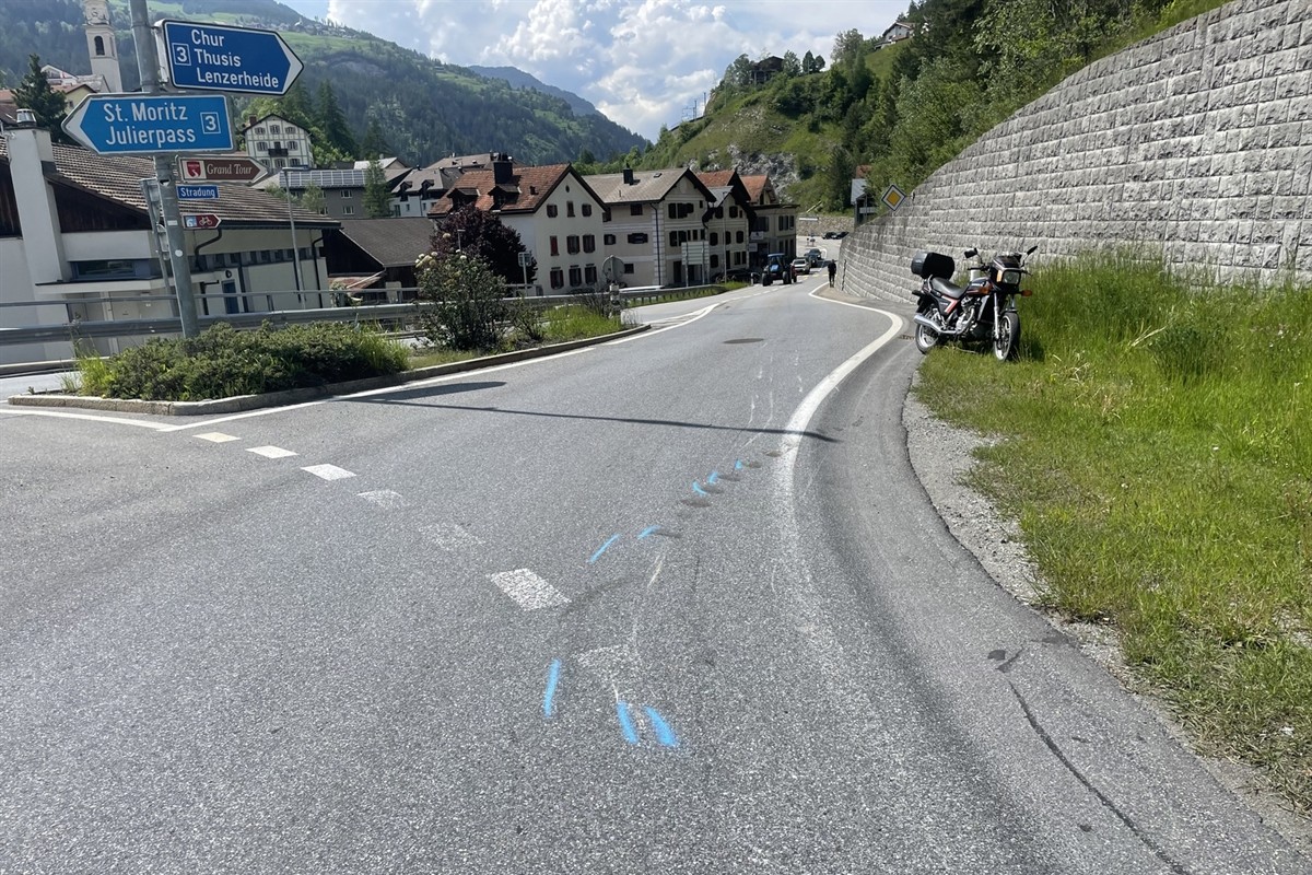 Der Motorradfahrer verletzte sich leicht und musste mit der Rettung Mittelbünden ins Spital Thusis gebracht werden. Die Kantonspolizei Graubünden klärt die Unfallursache ab.