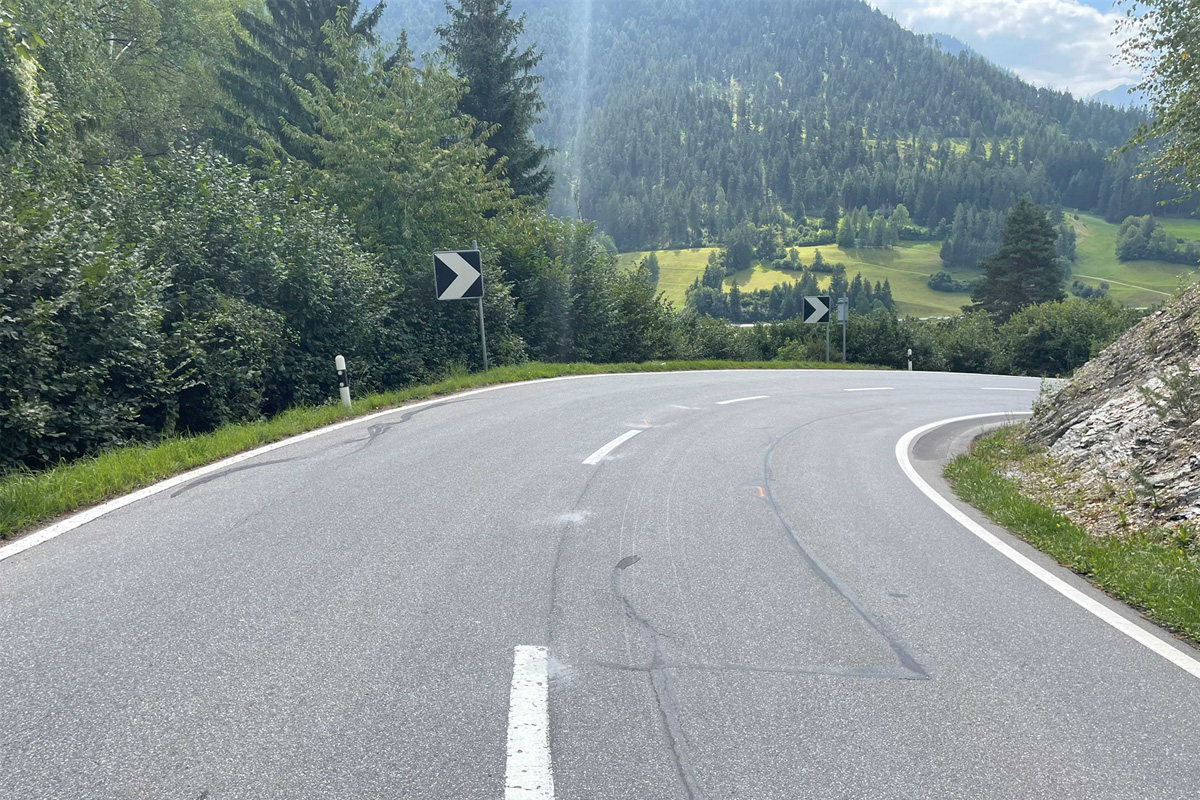 In einer markanten Kurvenkombination oberhalb Tiefencastel kam dieser auf die Gegenfahrbahn, verliess den Strassenkörper via einer Kiesfläche und rutschte letztlich der Fall-Linie folgend mit seinem Zweirad eine steilabfallende Böschung hinunter.