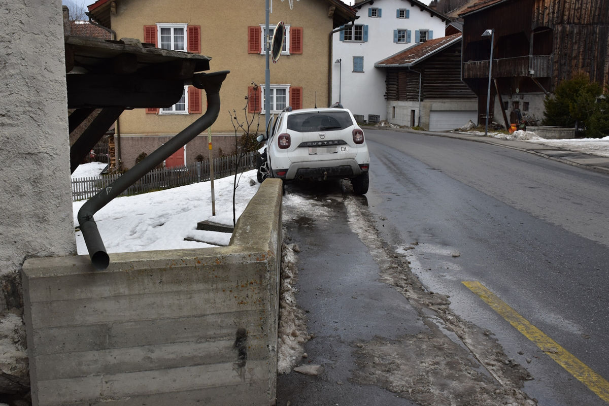 Am Montagnachmittag verunfallte eine Automobilistin in Tinizong selbst. Sie kollidierte mit einer Betonmauer und wurde dabei leicht verletzt.