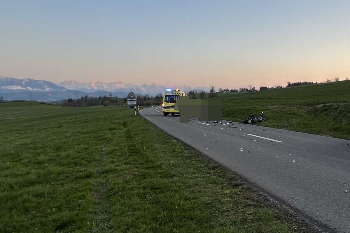 Der Verkehrsunfall ereignete sich am Mittwoch, 18. März 2026, kurz vor 18.30 Uhr auf der Alikonerstrasse in Auw. Eine 44-jährige Automobilistin fuhr in Richtung Auw. Zur gleichen Zeit war ein 57-jähriger Motorradlenker in Richtung Alikon unterwegs. Aus noch ungeklärten Gründen geriet dieser auf die Gegenfahrbahn und kollidierte frontal mit dem entgegenkommenden Personenwagen.