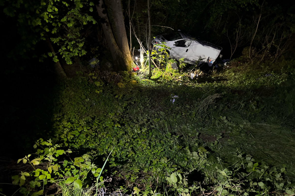 Am Mittwochabend (17.05.2023) fuhr ein Lieferwagen auf der Obereggerstrasse mit drei Insassen von Oberegg herkommend in Richtung Büriswilen. Auf Höhe der Liegenschaft Nr. 36 kam der Lieferwagen aus noch nicht geklärten Gründen von der Strasse ab, stürzte das steile rechte Wiesenbord hinunter, überschlug sich mehrere Male und kam in einem Bachbett zum Stillstand.