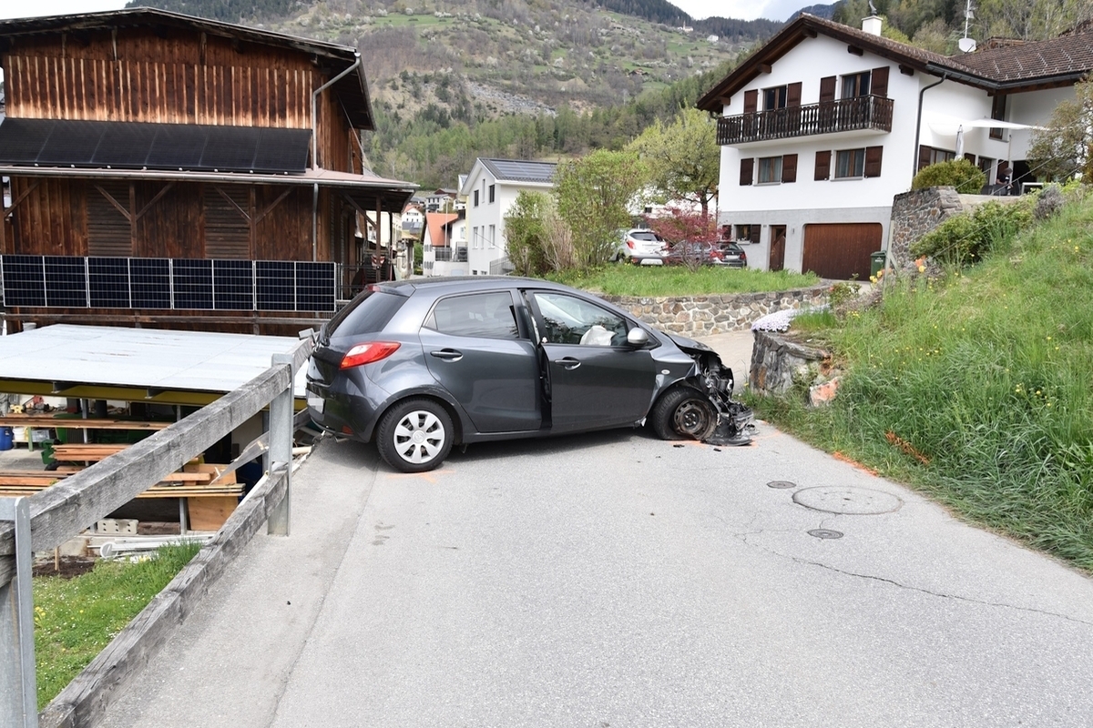 Die 70-jährige Autolenkerin fuhr um die Mittagszeit auf der Nebenstrasse Curschiglias in Richtung Schulhaus. Dabei kollidierte das Fahrzeug mit einer rechtsseitigen Steinmauer.