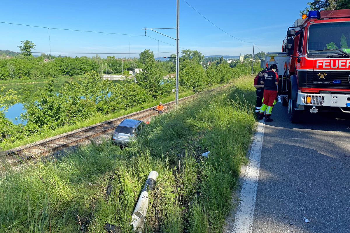 Das Auto geriet nach der Kollision von der Strasse und kam auf dem Bahntrassee zum Stillstand. Der Bahnverkehr musste für mehrere Stunden unterbrochen werden.