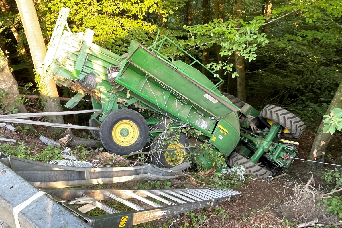 Ein Traktorfahrer war am 4. Mai 2023 gegen 18.15 Uhr mit angehängter Ballenpresse auf der Pfynerstrasse in Richtung Herdern unterwegs. Im Bereich einer Linkskurve verlor er aus noch ungeklärten Gründen die Kontrolle über seine Fahrzeugkombination. Diese kollidierte mit der rechten Leitplanke, überquerte beide Fahrbahnen und stürzte ein Bachtobel hinunter. Der 59-jährige Traktorfahrer wurde eingeklemmt.