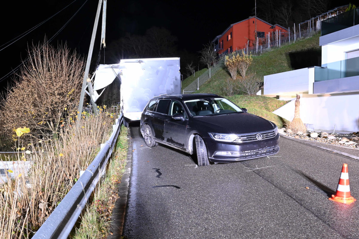Am Samstagabend (15. November 2025, kurz vor 23:30 Uhr) ereignete sich auf der Strecke zwischen Kulmerau und Triengen ein Verkehrsunfall. Ein 34-jähriger Lenker war mit einem angekoppeltem Sachentransportanhänger unterwegs, dessen seitliche Klappe sich während der Fahrt öffnete.