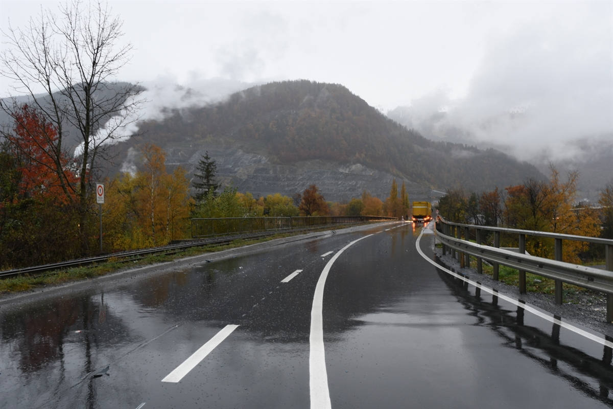 Unfallstelle in Richtung Anschluss N13 (Bildquelle: Kantonspolizei Graubünden)