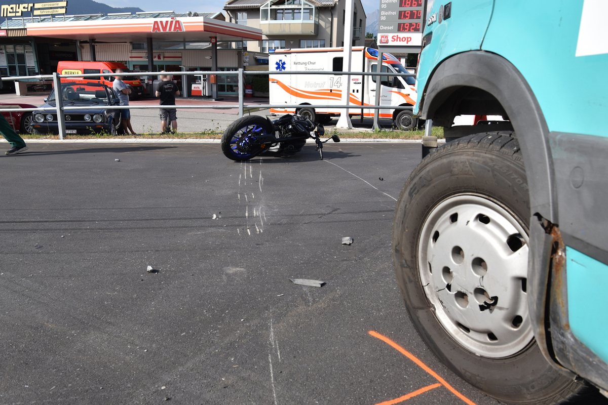 Am Donnerstag kam es in Trimmis zu einer Kollision zwischen einem Lieferwagen und einem Motorrad. Der Motorradfahrer wurde verletzt.
