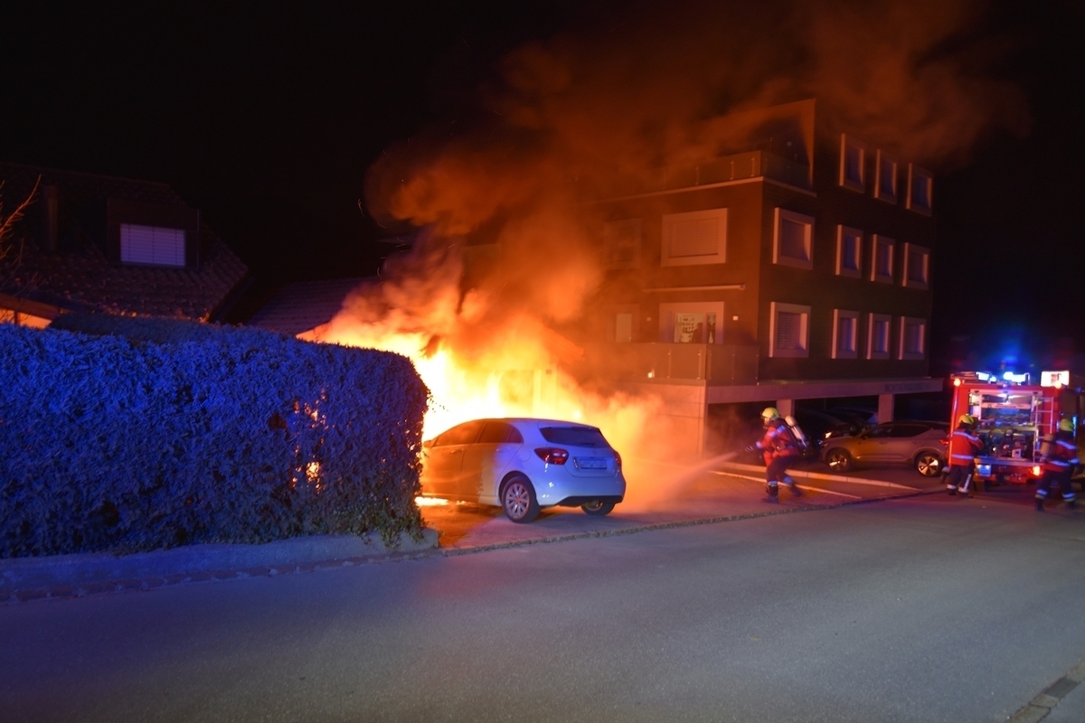 Um sein Auto am Donnerstag nach 19.10 Uhr in Trimmis in der Garagenbox zu parkieren, liess ein Junglenker seinen Beifahrer aussteigen, um das Garagentor zu öffnen. Dieser nahm Rauchgeruch aus dem Motorraum wahr und teilte das seinem Kollegen mit. Dieser stieg aus, wonach die beiden bereits Flammen im Motorraum sahen. Die alarmierte Feuerwehr Calanda löschte den Brand. Am Fahrzeug entstand Totalschaden und an der nahen Gebäudefassade sowie am Garagentor ein Sachschaden von mehreren tausend Franken.