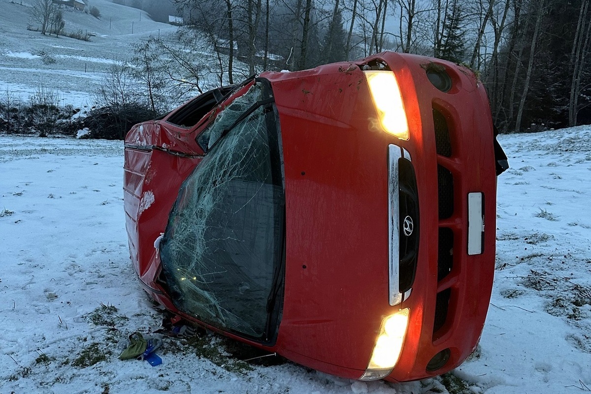 Um 07.30 Uhr fuhr ein 37-jähriger Mann mit einem Lieferwagen auf der mit Schnee bedeckten Nebenstrasse von der Landmark abwärts in Richtung Bruggmüli. Im Bereich Schibenwald geriet der Mann in einer Linkskurve über den rechten Strassenrand hinaus. Im abfallenden Wiesbord überschlug sich das Fahrzeug mehrmals und kam im flachen Wiesland zum Stillstand.