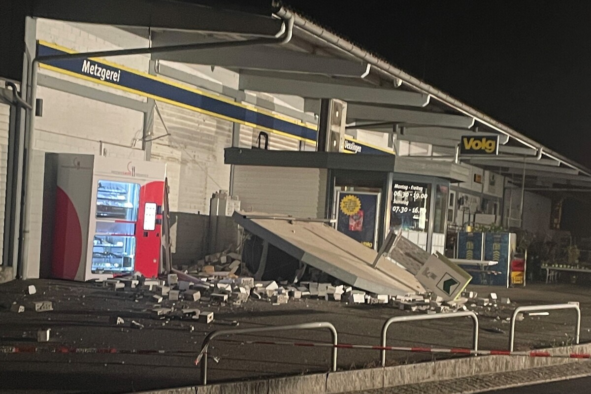 Kurz vor 2.45 Uhr ging bei der Kantonalen Notrufzentrale die Meldung ein, dass an der Schaffhauserstrasse beim Volg ein lauter Knall zu hören gewesen sei. Die Einsatzkräfte der Kantonspolizei Thurgau waren rasch vor Ort und fanden das Servicegebäude des Bankomaten in Trümmern vor.