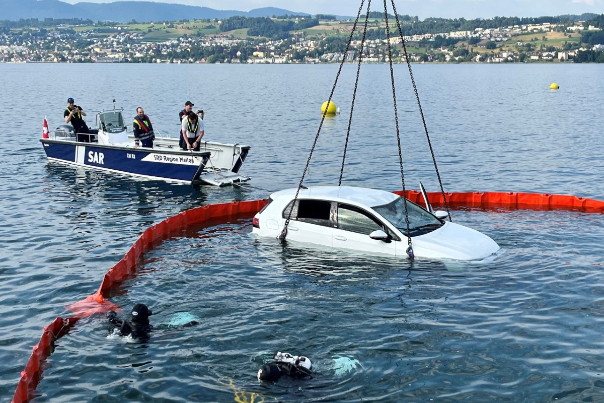 Das Auto war rund sieben Meter vom Schiffsteg entfernt auf Grund gesunken. Noch in der Nacht sicherten Taucher der Kantonspolizei das Fahrzeug unter Wasser bis zur Bergung mit Seilen. Die Bergung wurde aus Sicherheitsgründen auf den Freitagmorgen verschoben. Um eine mögliche Gewässerverschmutzung durch auslaufende Flüssigkeiten zu verhindern, errichtete die Feuerwehr rund um das gesunkene Auto eine Ölsperre.
