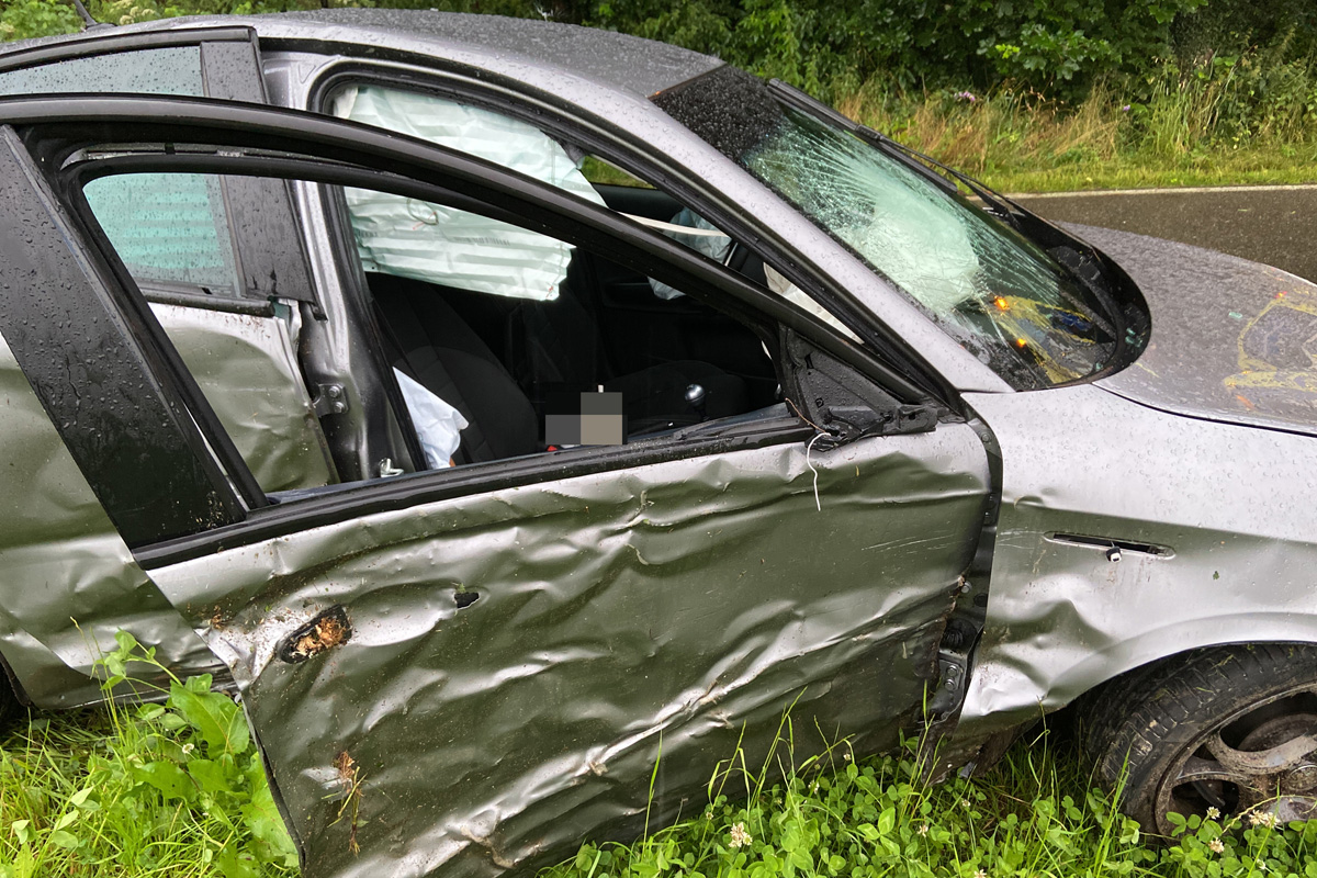 dabei mit seinem fahrzeug von der Strasse ab, prallte