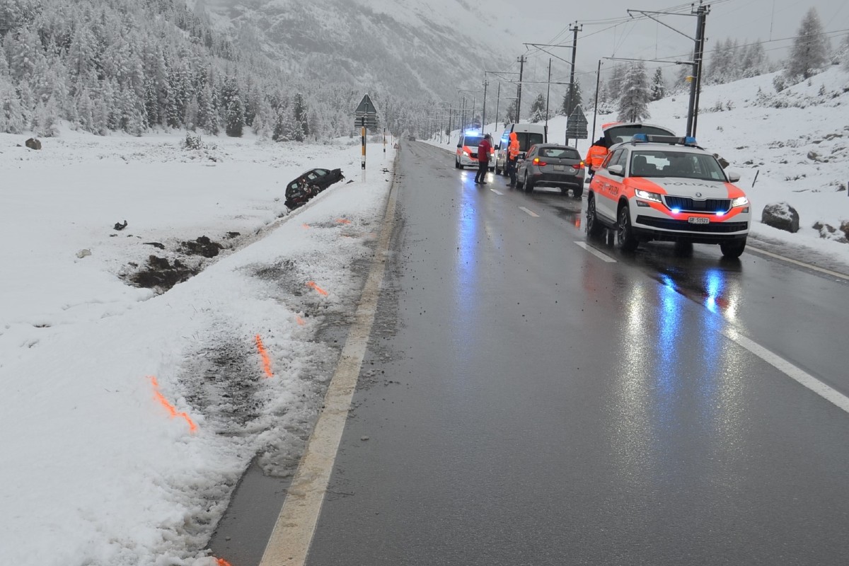 Nach Bernina Suot geriet das Auto um 06.30 Uhr nach links und kam von der Strasse ab. Auf einer Strecke von rund 70 Metern überschlug es sich mindestens vier Mal, bevor es auf den Rädern zum Stillstand kam. Drittpersonen betreuten den leicht verletzten Fahrer und seinen mittelschwer verletzten Mitfahrer bis zum Eintreffen eines Teams des Rettungsdienstes Poschiavo.