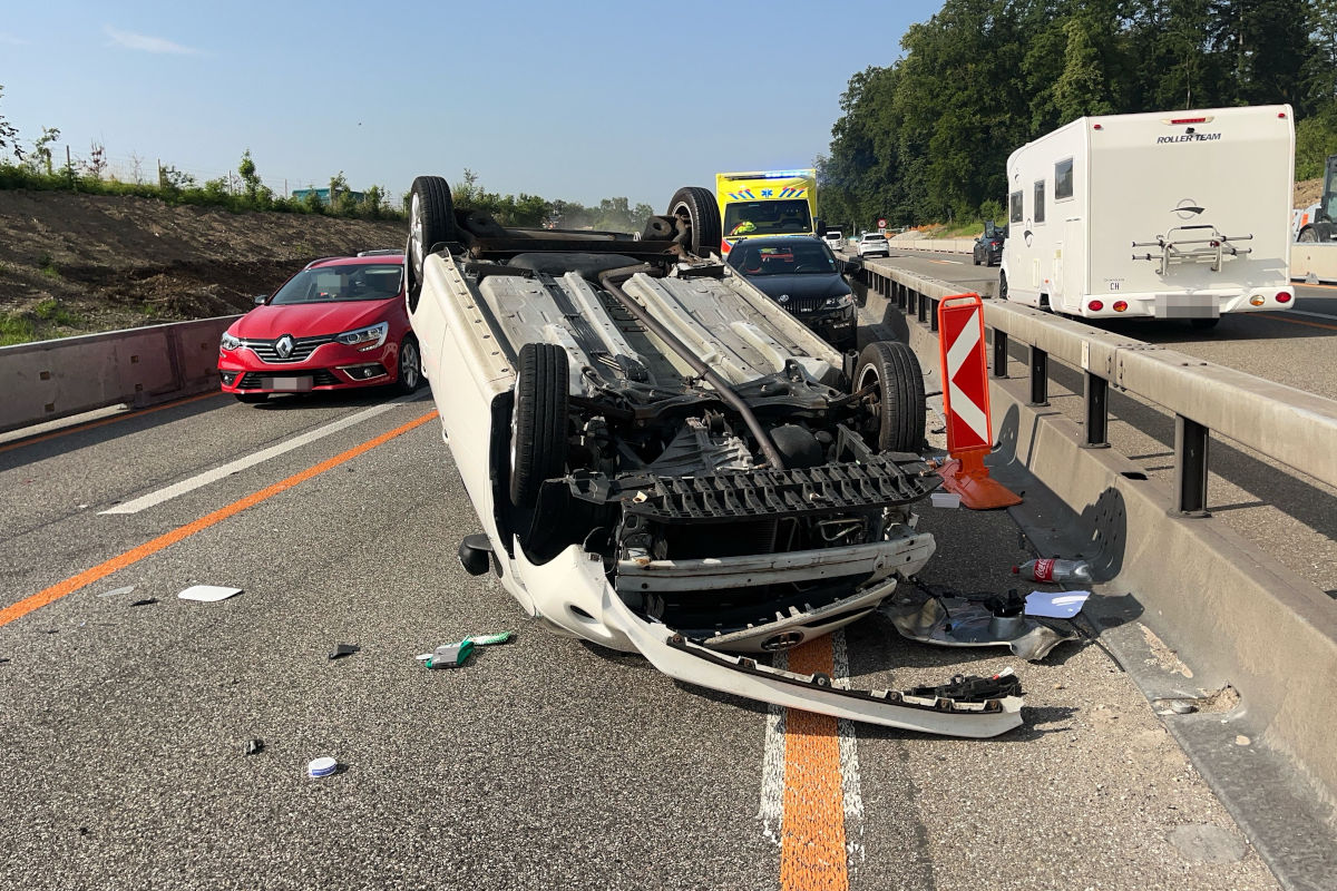 Unfall auf der A1 bei Deitingen SO – Auto überschlägt sich nach Kollision